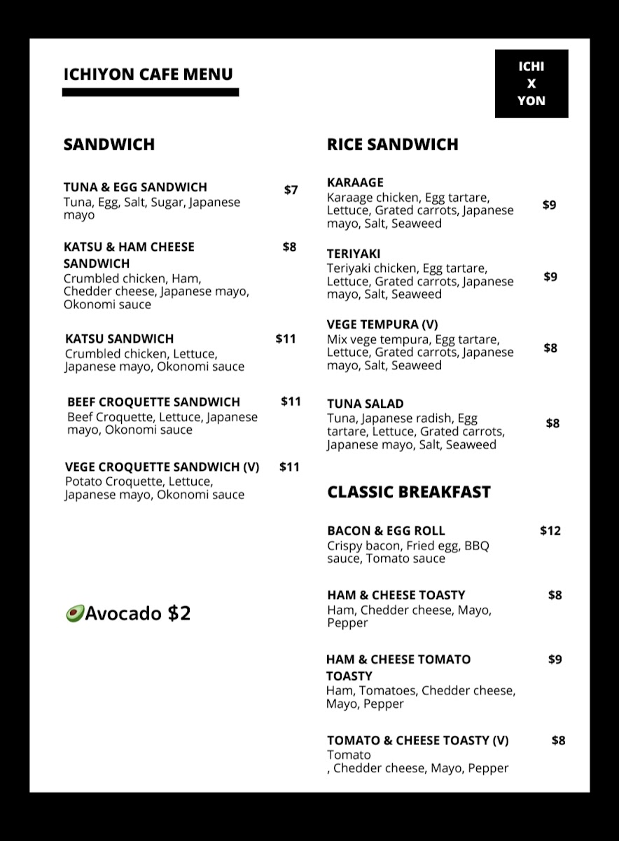Ichiyon cafe Menu